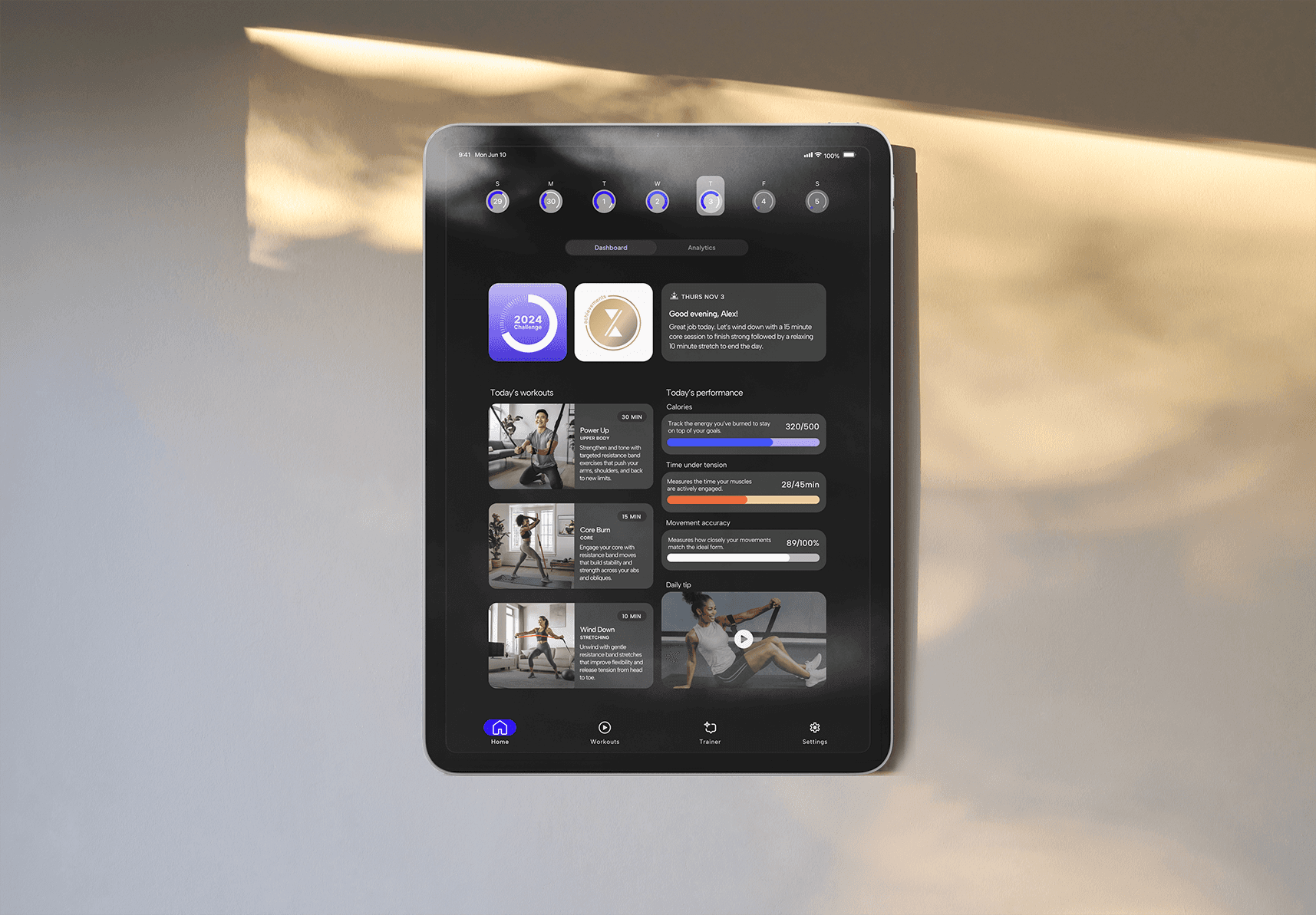 I wanted a solution that would provide the premium experience of a wall-mounted system like Tonal, but realized that the inclusion of a smart screen would compromise affordability.